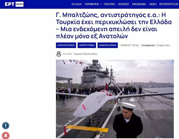 Türkiye'nin savunma alanındaki yerli ve milli hamleleri Yunanistan'ın gündeminden düşmüyor. NATO'nun en güçlü 2. ordusuna sahip Türkiye'nin savunma sanayii alanındaki büyük ilerlemesi Yunanistan'da paniğe neden oluyor. Türk donanması ve hava kuvvetlerinin Yunanistan'ınkinden daha güçlü olduğu itiraf edilen haberlerin ardından Yunan Korgeneral Yannis Baltzois Yunan devlet televizyonunda çarpıcı açıklamalarda bulundu.