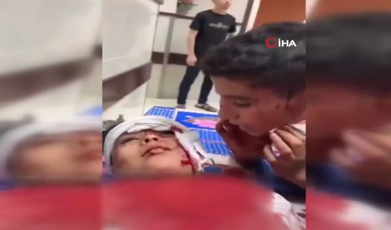 Gazze'de Filistinli bir çocuğun İsrail'in hastane saldırısında yaralanan kardeşine şehadet getirtmeye çalıştığı anlar yürek sızlattı.