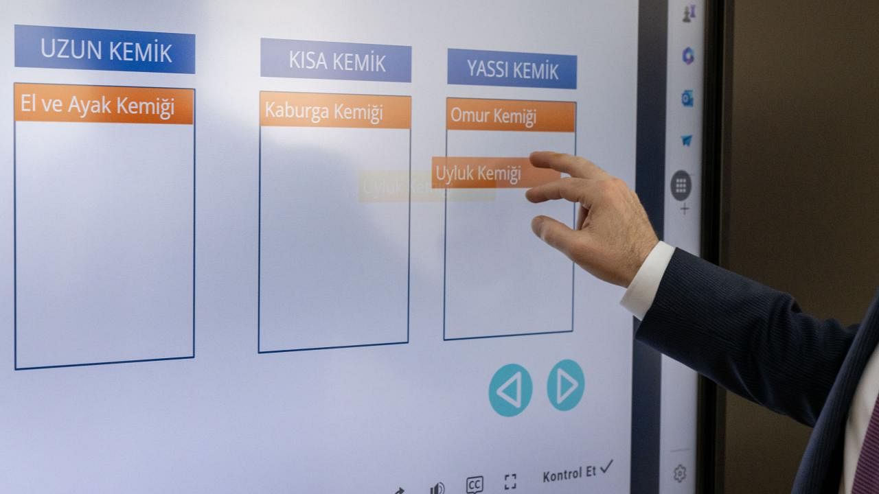Ders işlendiği sırada öğrencilerin önündeki kitapların yanı sıra tahtada da öğretmenin zenginleştirilmiş kitap aracılığıyla dersi tam ekran işleyebilmesini amaçladıklarını ifade eden Canlı, şunları söyledi: