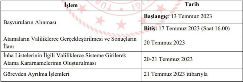 Buna göre, başvurular 13-17 Temmuz tarihleri arasında MEBBİS üzerinden alınacak.