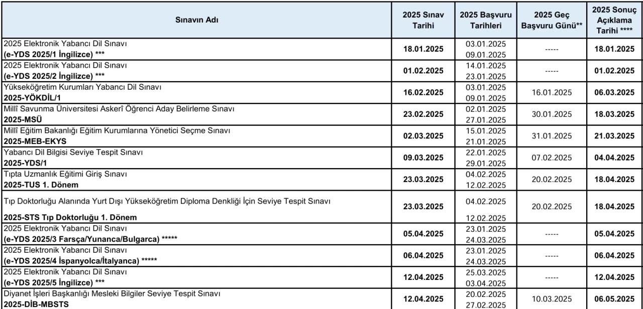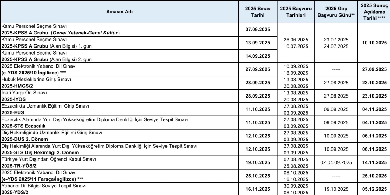 ÖSYM 2025 Yılı Sınav Takvimi'ne "https://osym.gov.tr" adresinden ulaşılabilecek. Sınav tarihlerine ulaşmak için tıklayın.