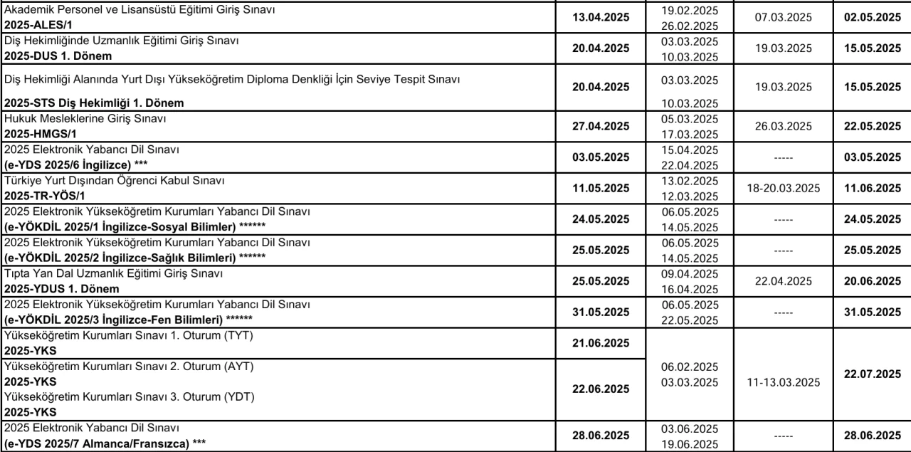 Ersoy’un açıklamasına göre, Yükseköğretim Kurumları Sınavı (YKS), 21-22 Haziran 2025'te yapılacak.