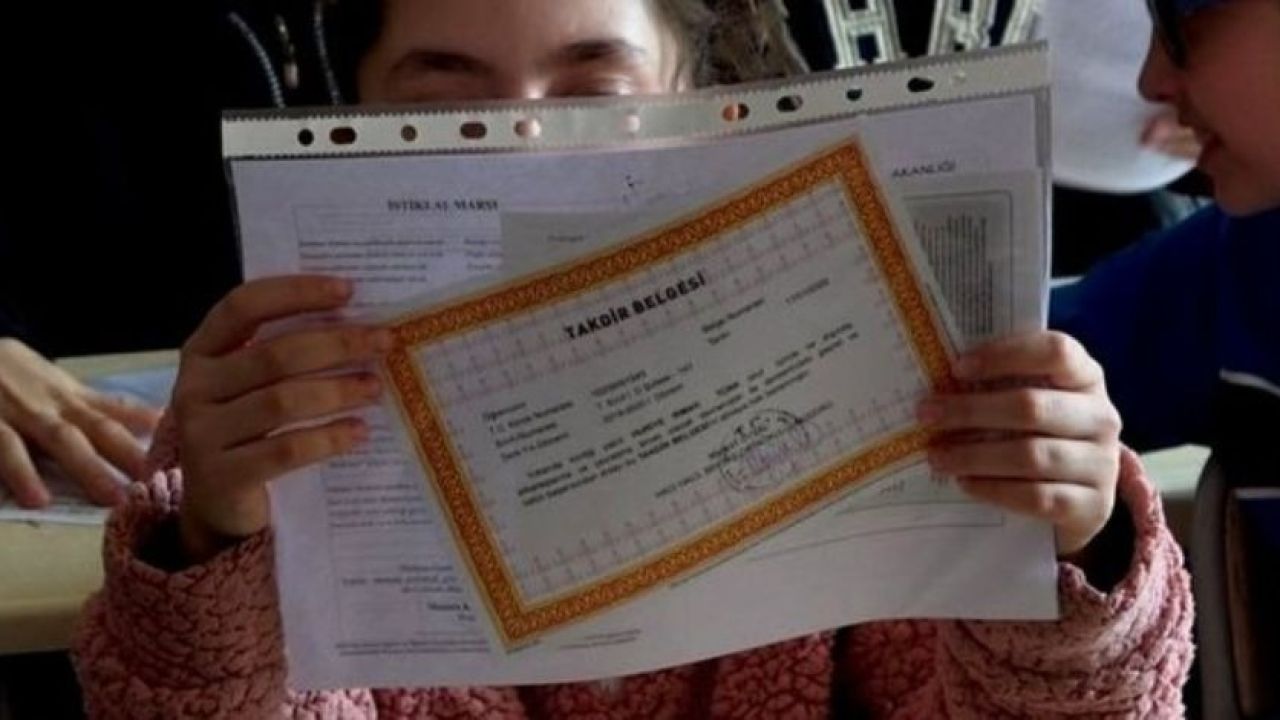 c) Ortaöğrenim süresince en az üç öğretim yılının bütün döneminde takdir belgesi alanları üstün başarı belgesi ile ödüllendirir.