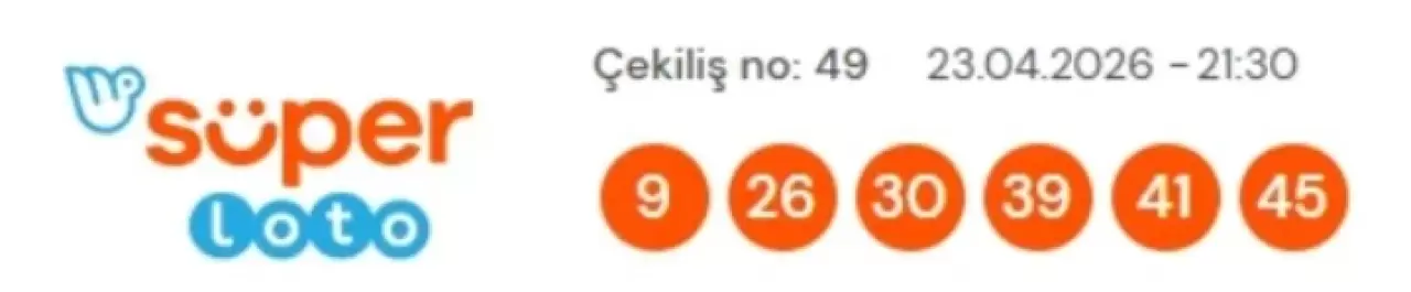 Milli Piyango İdaresi tarafından düzenlenen Süper Loto'nun 49 numaralı çekilişinde kazandıran numaralar açıklandı. 23 Nisan 2026 Perşembe akşamı yapılan çekilişte şanslı sayılar şunlar oldu: 9 - 26 - 30 - 39 - 41 - 45. Çekiliş sonuçlarını Milli Piyango Online web sitesi veya mobil uygulaması üzerinden bilet numaranızla sorgulayabilirsiniz.