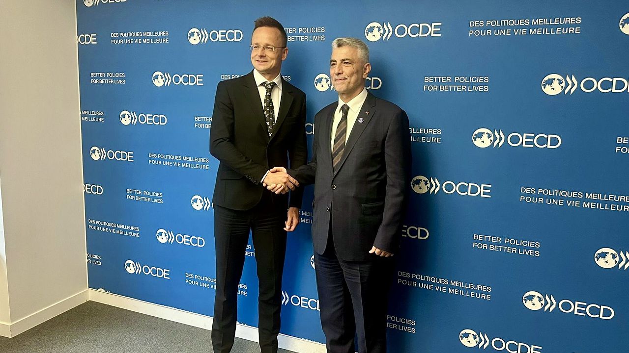 Ticaret Bakanı Ömer Bolat, Ekonomik İşbirliği ve Kalkınma Örgütü (OECD) Bakanlar Toplantısı'nın ardından Macaristan Dışişleri ve Ticaret Bakanı Peter Szijjarto ile görüştüğünü belirterek, "Güçlü tarihi ve kültürel bağlarımız, köklü ekonomik ilişkilerimiz bulunan Macaristan ile ticari ve ekonomik ilişkilerimizi çok daha güçlü seviyelere çıkaracağız." ifadesini kullandı.