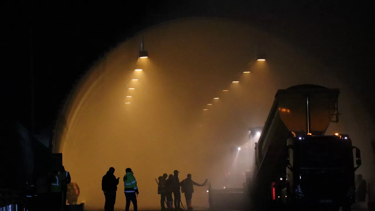 Anadolu Otoyolu’nun Bolu Dağı Tüneli’nin İstanbul istikameti 31 Temmuz’da trafiğe kapatıldı. İstanbul yönündeki tüpünün uzatılması çalışmaları nedeniyle yol 37 gündür trafiğe kapalı. Tünelin 67 metre uzatılması ve iki viyadükte 4 adet genleşme derzinin değiştirilmesi çalışmaları büyük ölçüde tamamlandı. İstanbul yönüne gitmek isteyen sürücüler 37 gün boyunca Abant gişelerinden çıkarak D-100 kara yolunu kullandı. Kilometrelerce araç kuyruğunun oluştuğu D-100 Bolu Dağı geçişinde oluşan trafik çilesini bitirmek için ekiplerin hummalı çalışmaları sürüyor. Tünel portallarının uzatma çalışmalarını tamamlayan ekipler, asfalt serimi yaptı. TGRT Haber’e canlı yayın konuğu olan Ulaştırma ve Altyapı Bakanı Abdulkadir Uraloğlu, yolun yarın saatlerinde trafiğe açılacağına duyurdu.