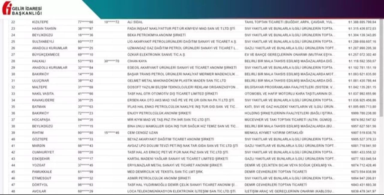 Gelir İdaresi Başkanlığı, konu ile ilgili iki farklı liste yayınladı: