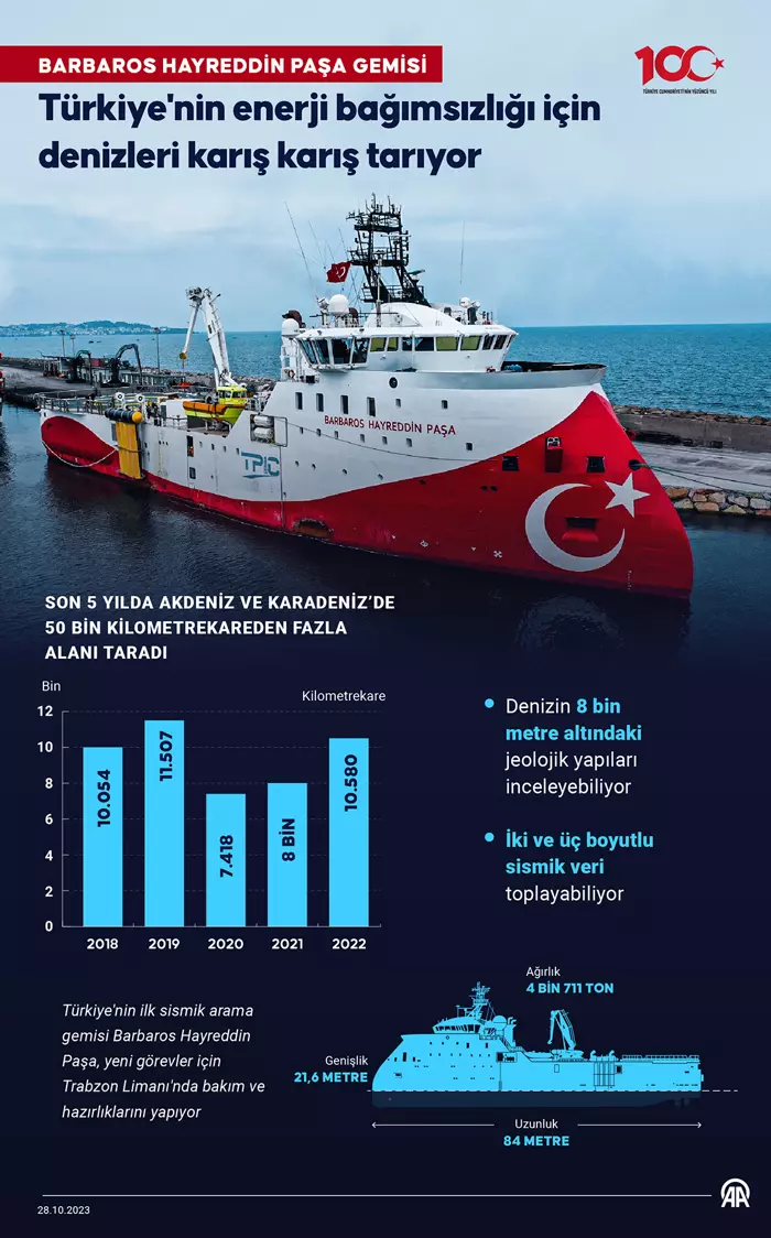 AA muhabirinin sektör raporlarından derlediği verilere göre, 2012'de hizmete alındıktan sonra farklı kurumlar çatısı altında hizmet veren ülkenin ilk sismik arama gemisi Barbaros Hayreddin Paşa, 2018'den beri Turkish Petroleum International Anonim Şirketi bünyesinde faaliyetlerini sürdürüyor.