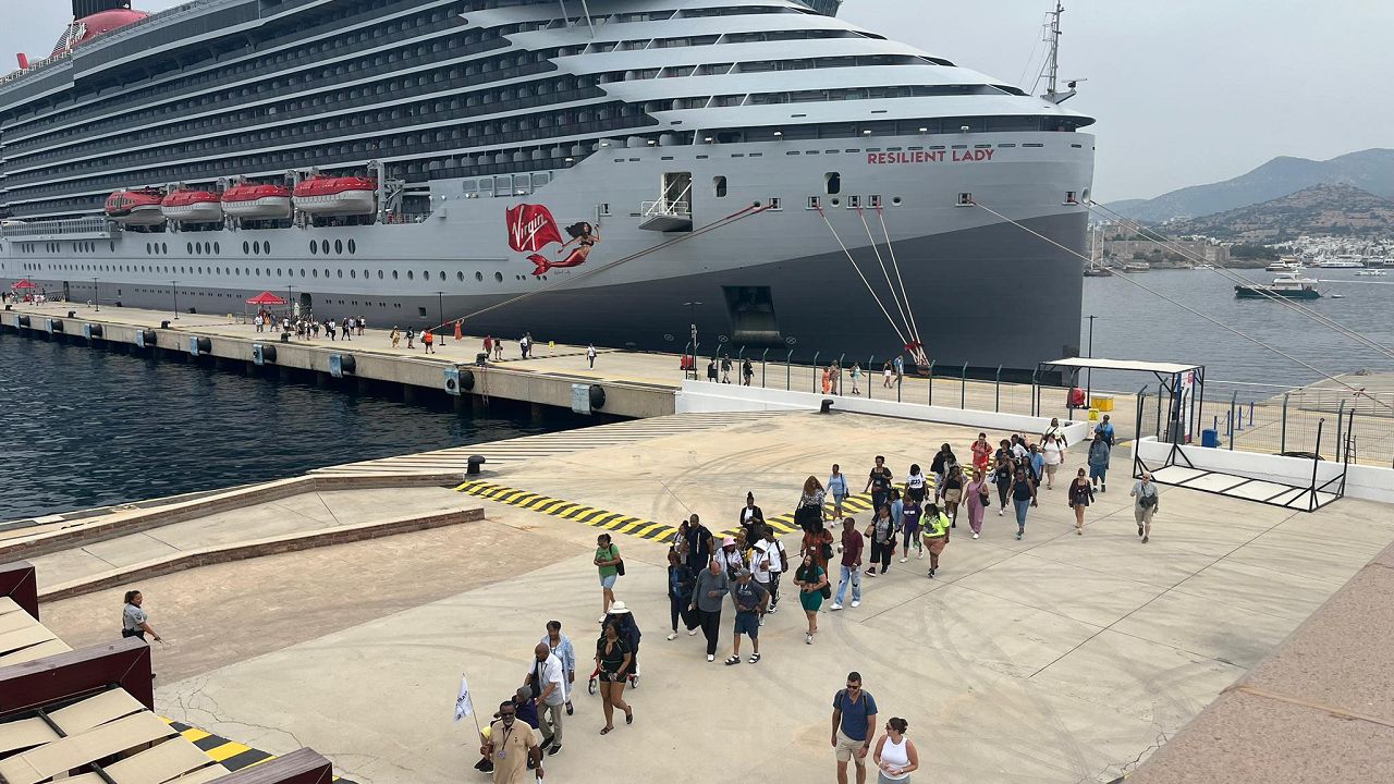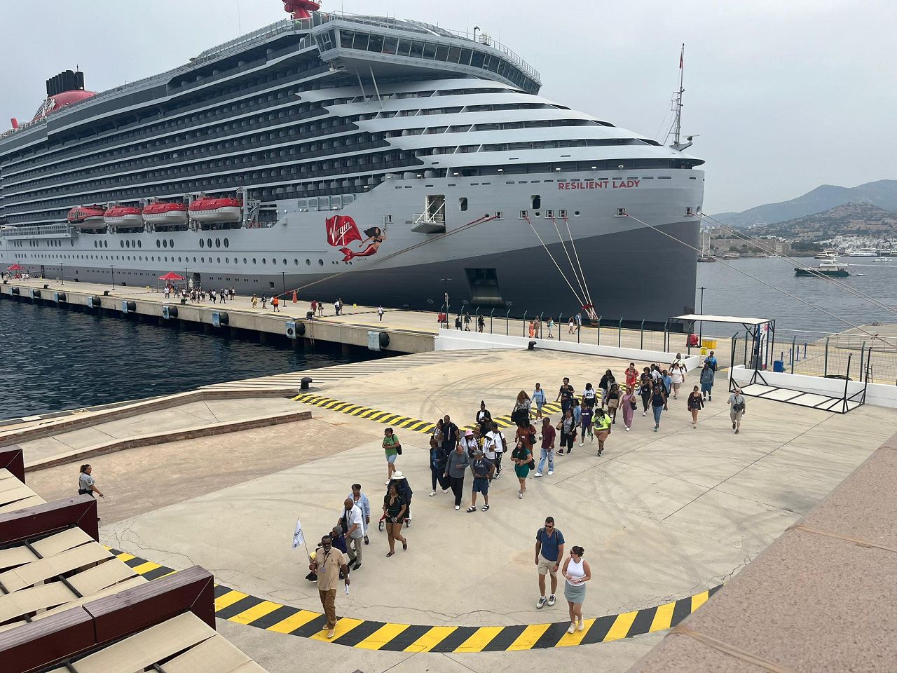 Rodos Limanı'nın ardından rotasını Bodrum'a çeviren 277 metrelik, 2355 yolcusu ve 1140 personeli bulunan dev gemi, Bodrum Cruise Port iskelesine yanaştırıldı.