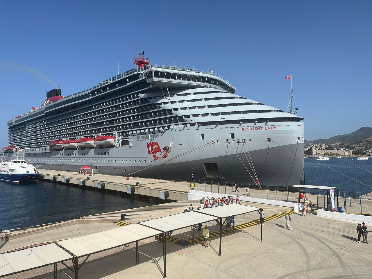 Rodos Limanı'nın ardından rotasını Bodrum'a çeviren 277 metrelik, 2342 yolcusu ve 1150 personeli bulunan dev gemi, Bodrum Cruise Port iskelesine yanaştırıldı.
