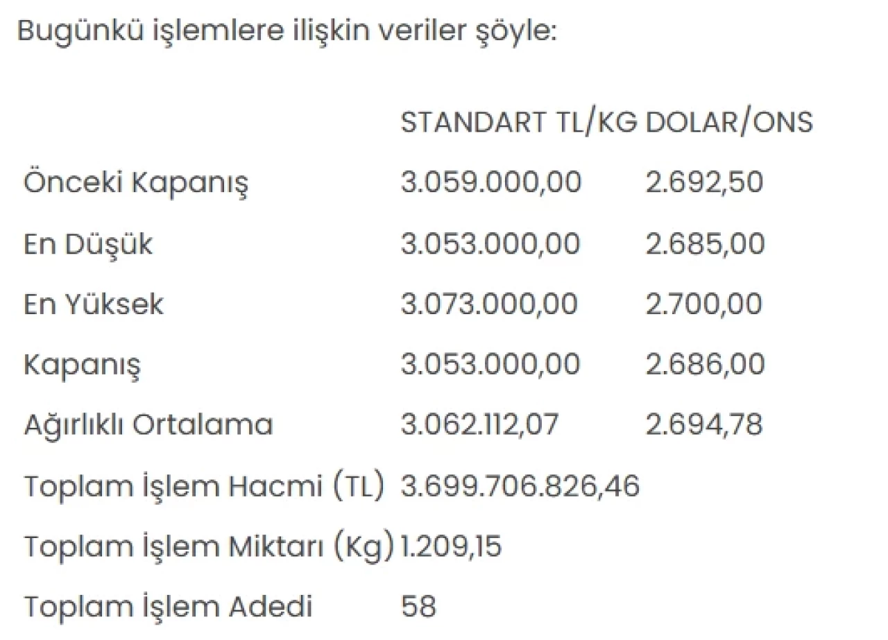 Tüm metallerdeki toplam işlem hacmi ise 3 milyar 732 milyon 409 bin 592 liraya ulaştı.