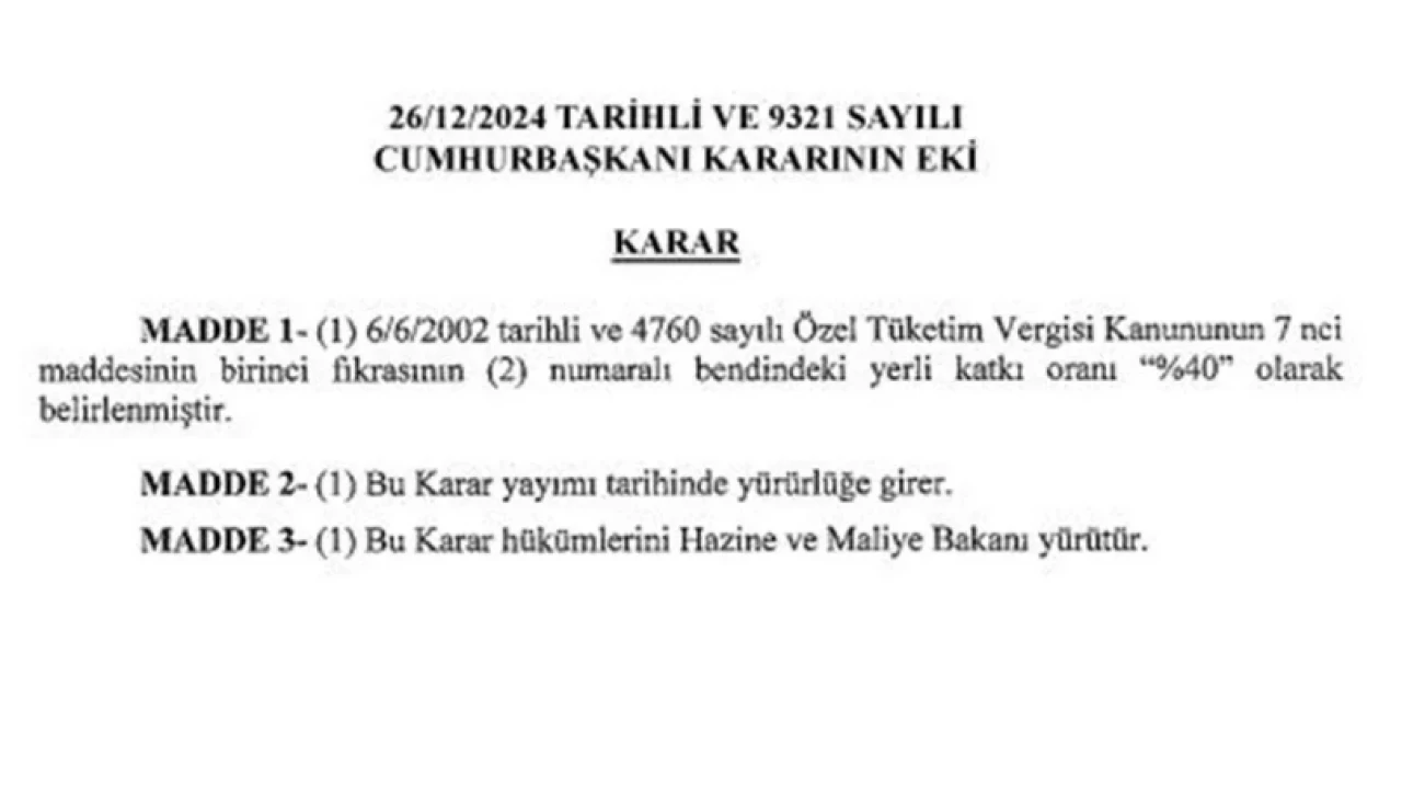 Resmi Gazete’de yayımlanan Cumhurbaşkanı Kararına göre, engelli bireyler artık ÖTV’den muaf araç alımlarında yüzde 40 yerlilik oranına sahip modelleri tercih edebilecek.
