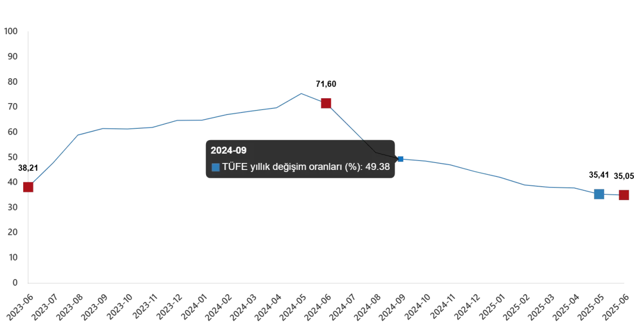 Haziran 2024’te yıllık enflasyon yüzde 71,60 seviyesindeydi. Bu oran 2025 Haziran itibarıyla yüzde 35,05’e gerileyerek dikkat çekici bir düşüş sergiledi. Ancak, enflasyonun temel belirleyicileri olan bazı harcama gruplarındaki yükselişler sürüyor.