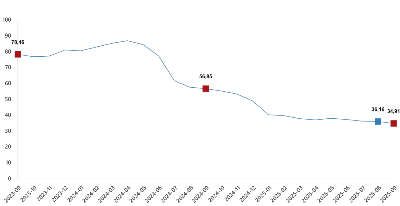 Buna göre, H-ÜFE aylık bazda yüzde 0,21, Aralık 2022’ye göre yüzde 34,76, geçen yılın eylül ayına kıyasla yüzde 34,91 ve 12 aylık ortalamalara göre yüzde 40,43 artış gösterdi.
