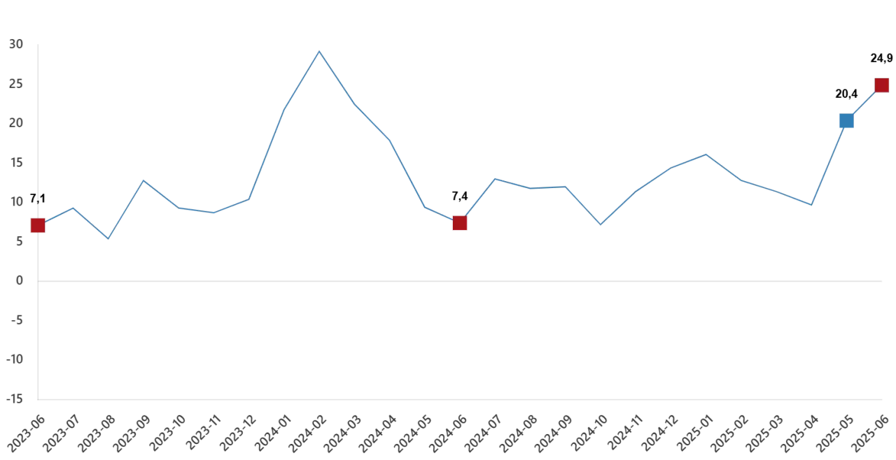 TÜİK verilerine göre, haziran ayında bina inşaatı sektörü endeksi, geçen yılın aynı dönemine kıyasla %26,9 artış gösterdi. Bu artış, özellikle konut ve ticari bina projelerindeki yoğun faaliyetlerle açıklanıyor. Bina dışı yapıların inşaatı sektörü endeksi ise yıllık bazda %16,7 yükselirken, özel inşaat faaliyetleri sektörü endeksi %23,6 artış kaydetti.