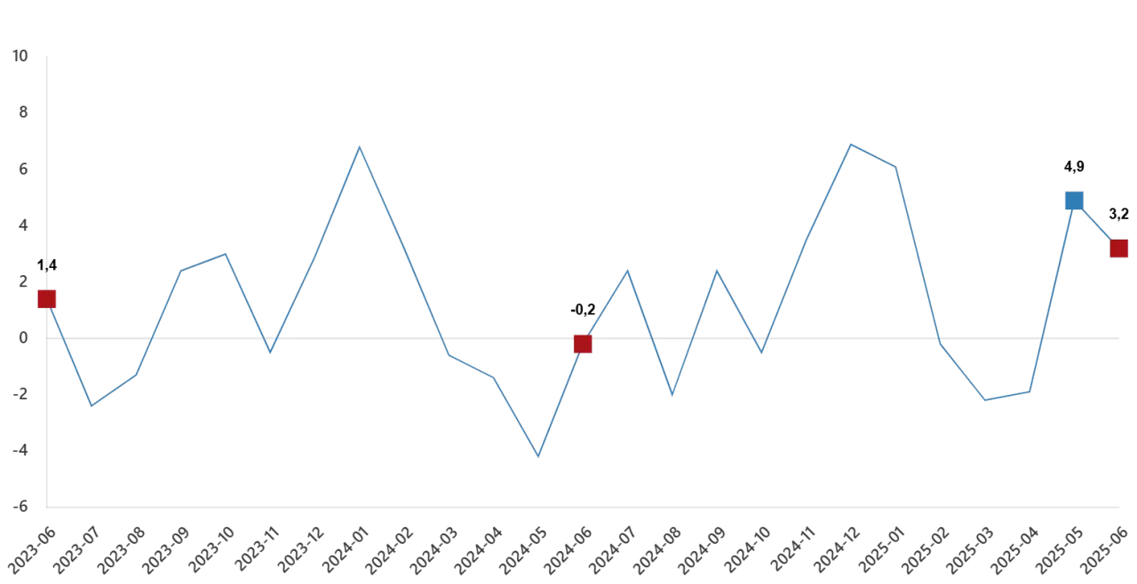 İnşaat üretimi, haziran ayında bir önceki aya göre de artış gösterdi. Buna göre bina inşaatı sektörü endeksi %3,1, bina dışı yapıların inşaatı sektörü endeksi %3,1 ve özel inşaat faaliyetleri sektörü endeksi %3,7 oranında yükseldi.