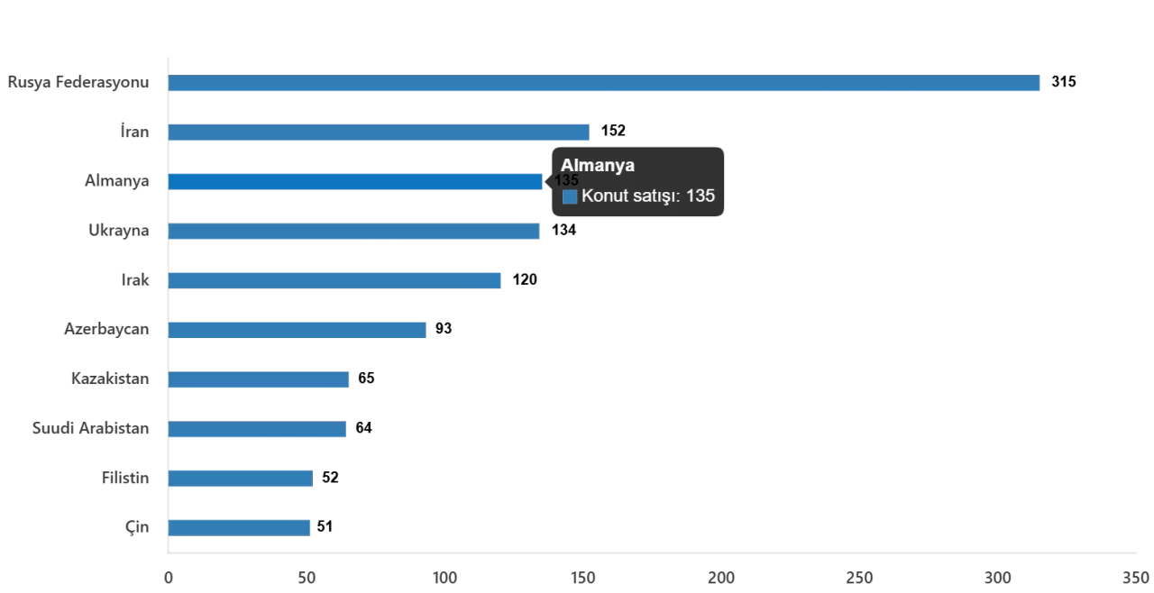 Ülke uyruklarına göre Temmuz ayında en fazla konut satışı şu şekilde gerçekleşti: