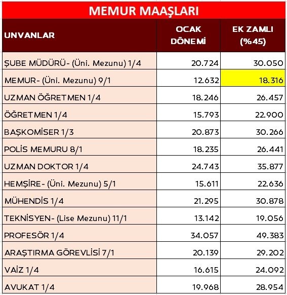 EN DÜŞÜK MEMUR MAAŞI NET 22 BİN TL, MEMUR EMEKLİSİ MAAŞI 14 BİN 670 TL