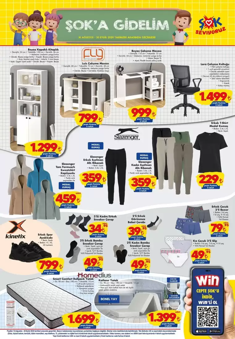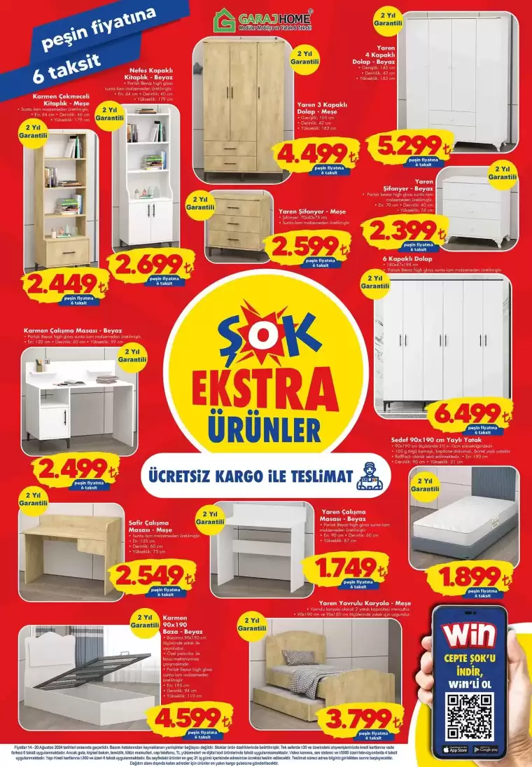 14 Ağustos ŞOK aktüelde katlanır yatak 1.399 TL, beyaz kitaplık 1.299 TL, çalışma koltuğu 1.499 TL' den satılacak.