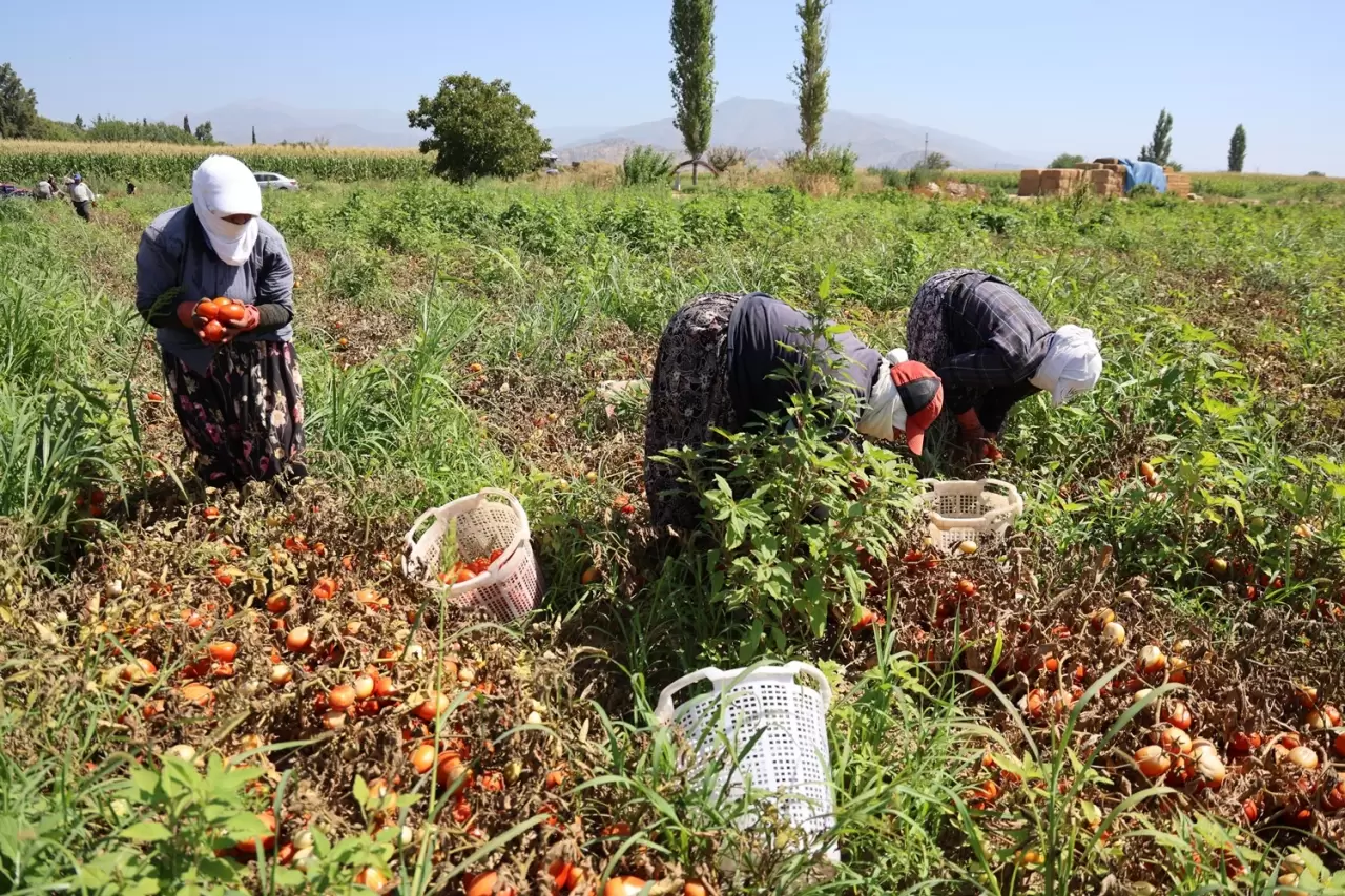 Tarlada hasat yapan işçilerden Hülya Aydın da, "Sabah 05.30'da tarlaya gelip işe başlıyoruz. Hava çok sıcak olduğu için öğlen saatlerinde bırakıyoruz. Emekliliğimiz yok, çalışmak zorundayız. Domatesin dikiminden toplamaya kadar her aşamada biz varız" ifadelerini kullandı.
