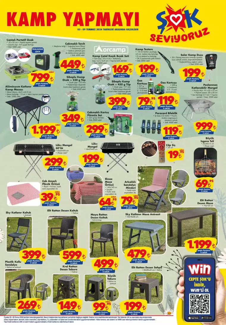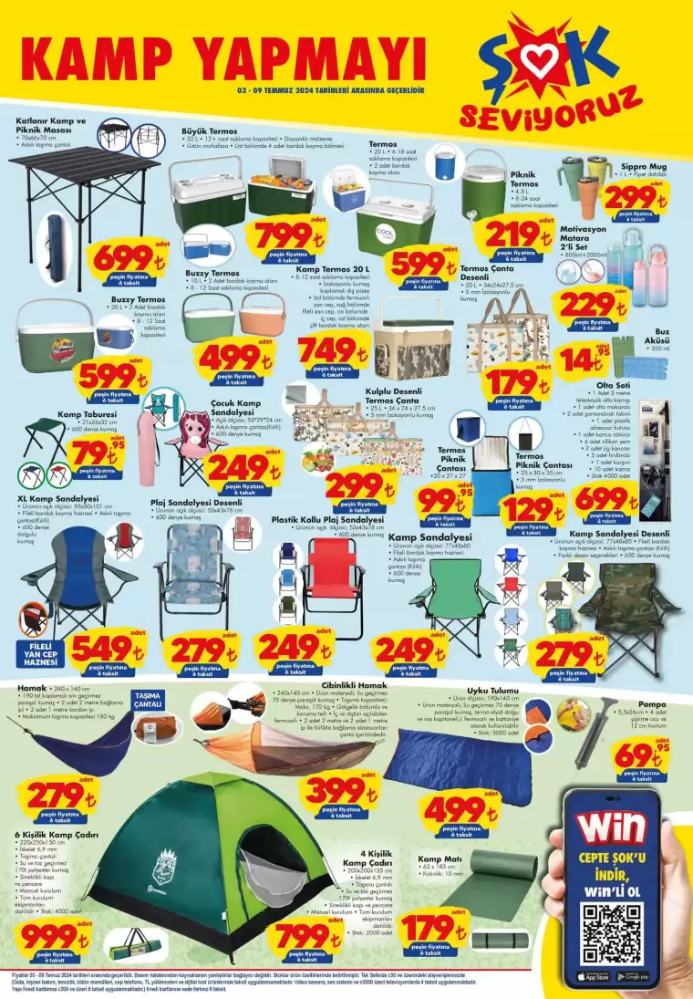ŞOK'ta haftanın fırsat ürünleri satışa sunulacak. Bu hafta en çok dikkat çeken ürünler arasında kamp malzemeleri yer alıyor. Termoslardan, kamp çadırlarına, sandalyelerden, hamaklara kadar pek çok ürün 3 Temmuz ŞOK aktüelde yer alacak.