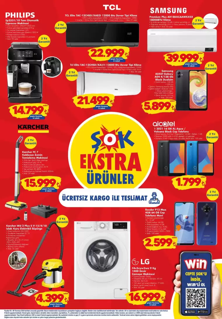 ŞOK mağazalarında kahve makinesi, klima, ve Karcher temizleme makineleri uygun fiyatlarıyla 3 Temmuz aktüelde.