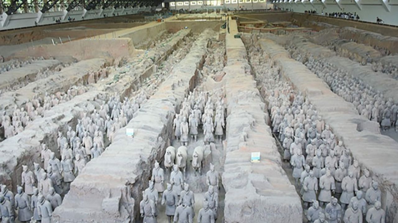 "Dünyanın 8 Harikası"dan biri olarak görülen Çin'in ünlü ölümsüz ordusunun eşlik ettiği imparatorun mezarı ise yerin 36 metre altında bulunuyor. Yer altı ordusu için aşağı yukarı 7 metre derinliğinde, dört ana çukur kazılırken bunlardan en büyüğü ise 230 metre uzunluğunda ve 62 metre genişliğinde olan çukurda 6 binden çok figür yer alıyor. İkinci ve üçüncü çukurda ise savaş arabalarının yanı sıra süvari ve piyade birimleri ile yüksek rütbeli subaylar ve bir savaş arabası bulunuyor.