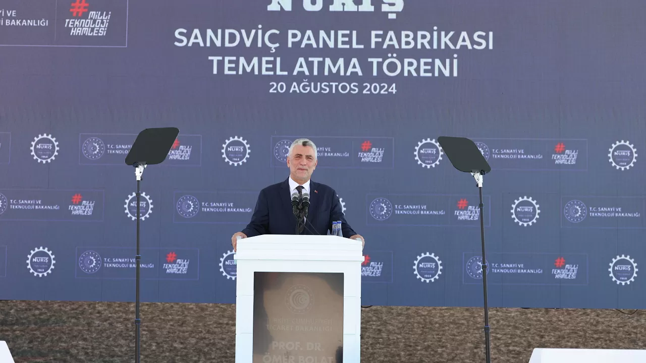 Temel atma töreninde konuşan Bakan Bolat, fabrikanın 22 bin metrekare alanda 1,5 inşa edileceği söyledi. 21 yılda ekonomik büyüklüğün 230 milyar dolar milli gelirden, 1 trilyon 158 milyar dolara yükseldiği bilgisini verdi. Bakan Bolat, Türkiye'nin yılda ortalama yüzde 5.4 büyüyerek dünyada en hızlı büyüyen ülkeler arasında yer aldığını kaydederek, “Ülkemiz bu yılda ilk çeyrekte yüzde 5.7 büyüdü. Ve bu büyümede lokomotif görevi gören sektörlerin başında da sanayi gelmekte. Gerek üretimimizde gerekse ihracatımızda sanayi ve imalat sanayi çok önemli bir yer tutuyor. Rekorlar kıran ve 21 yılda 7.1 katı büyüyen 36 milyar dolardan bugün 261,5 milyar dolara yükselen ihracatımızın da yüzde 94'ü sanayiden gelmektedir. İlk yedi ayda da yüzde 3.4 oranda ihracatımız, mal ihracatımız büyüme kaydetti. Aynı şekilde hizmet ihracatımız da bu yıl hedeflendiği yüzde 10 büyümeyi sağlayarak 110 milyar dolar hizmet ihracatı hedefine koşmaktadır. Jeopolitik gerilimler, bölgemizdeki etrafımızdaki savaşlar ve başta Avrupa olmak üzere batı dünyasındaki ekonomik durgunluk, dünya ticaretindeki durgunluk kolay bir süreçte olmadığımızı göstermekte. Ama buna rağmen etrafımız sıkıntılı ve ateş çemberi konumunda olmasına rağmen Türkiye'miz dirayetli bir liderlik ve istikrarlı bir siyaset yönetimi ve ekonomideki başarılı dengeleme politikası ve gelişme reformlarıyla beraber yoluna devam etmektedir” diye konuştu.