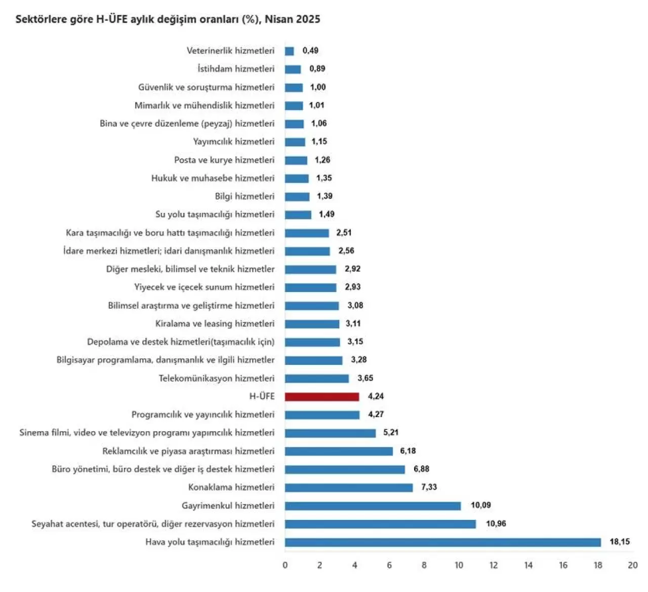 Türkiye İstatistik Kurumu (TÜİK) nisan ayına ilişkin hizmet üretici enflasyonu (H-ÜFE) verilerini açıkladı.