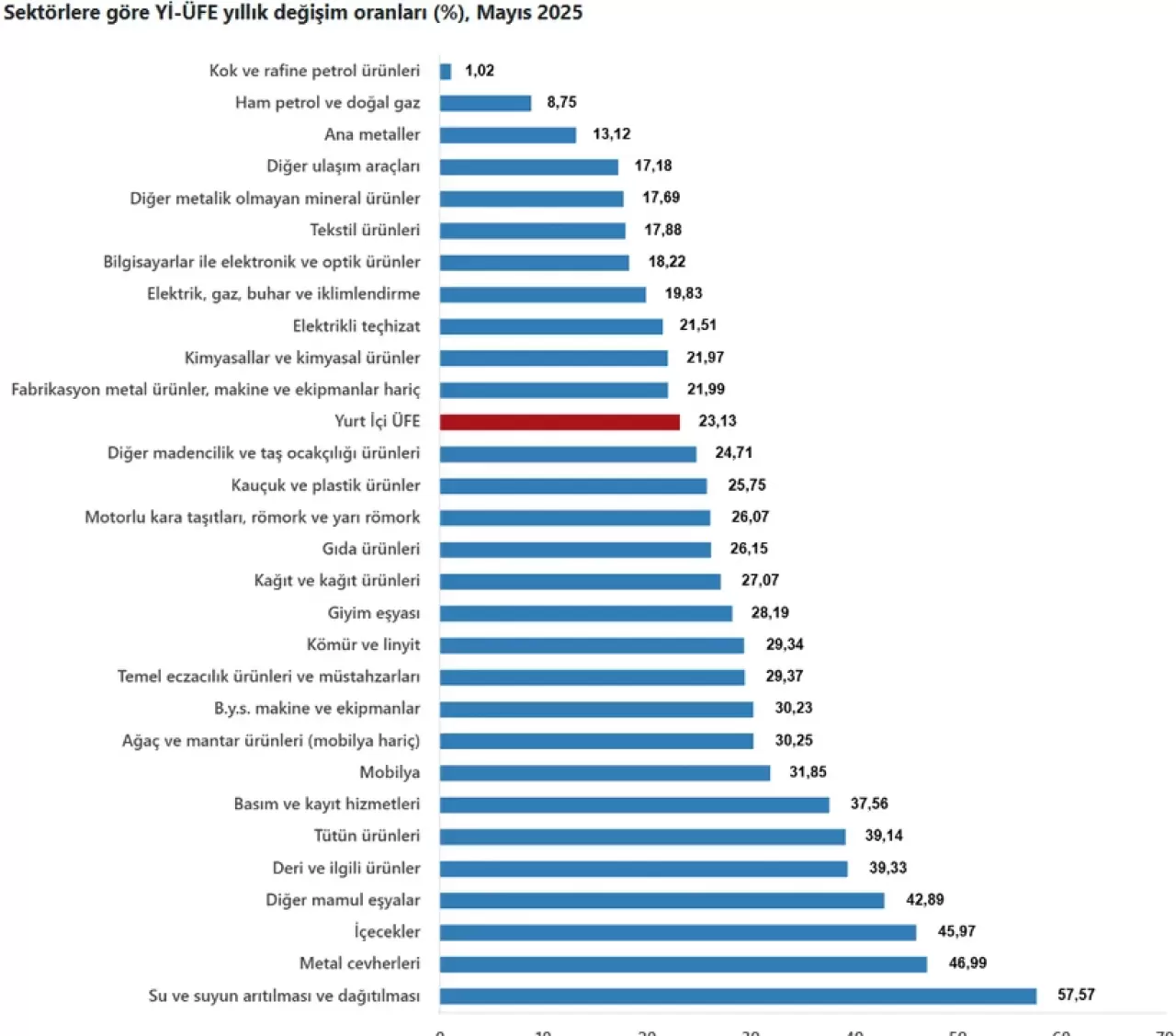 Türkiye İstatistik Kurumu (TÜİK), Mayıs 2025 dönemine ilişkin Yurt İçi Üretici Fiyat Endeksi (Yİ-ÜFE) verilerini açıkladı.