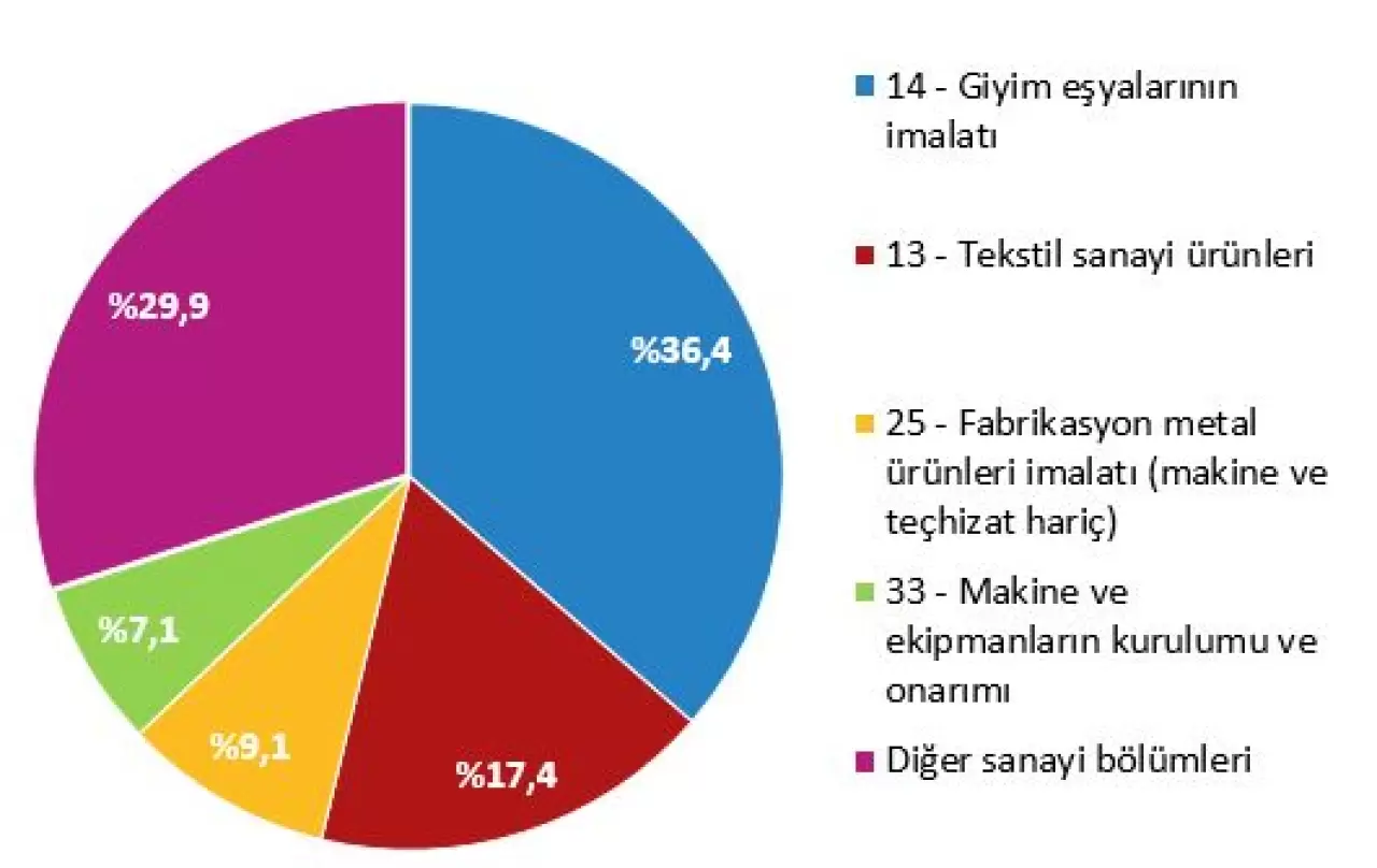 Fason üretimde en yüksek ciroyu sağlayan sektörler arasında giyim eşyası %36,4 ile başı çekerken, tekstil ürünleri %17,4 ve fabrikasyon metal ürünleri %9,1 ile onu izledi.