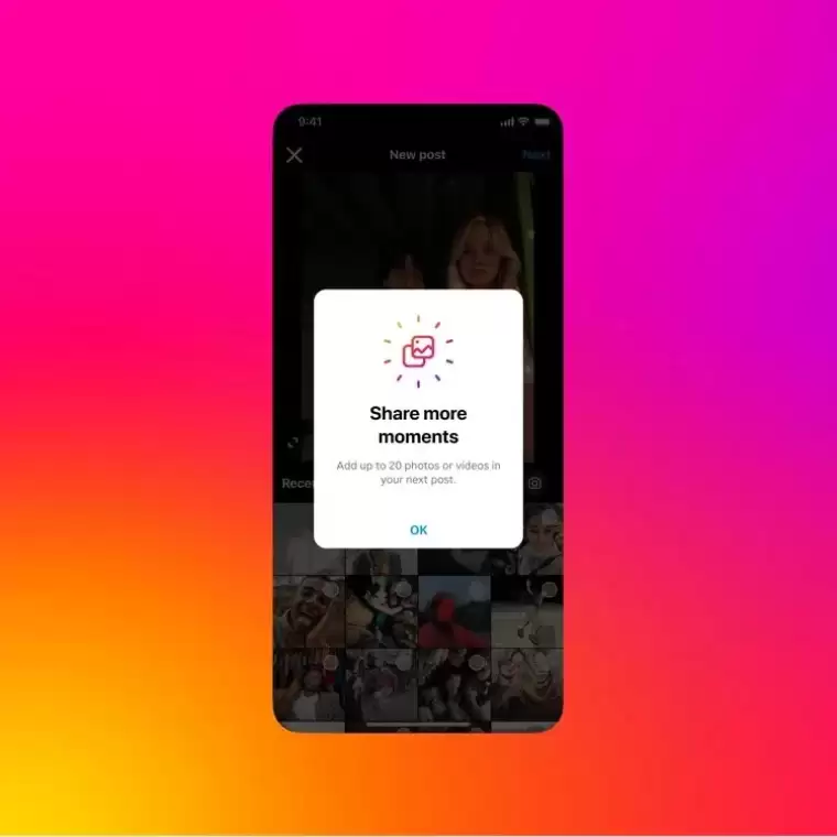 10 adede kadar paylaşılabilen karosel postlarda limit 20'ye çıkarıldı.