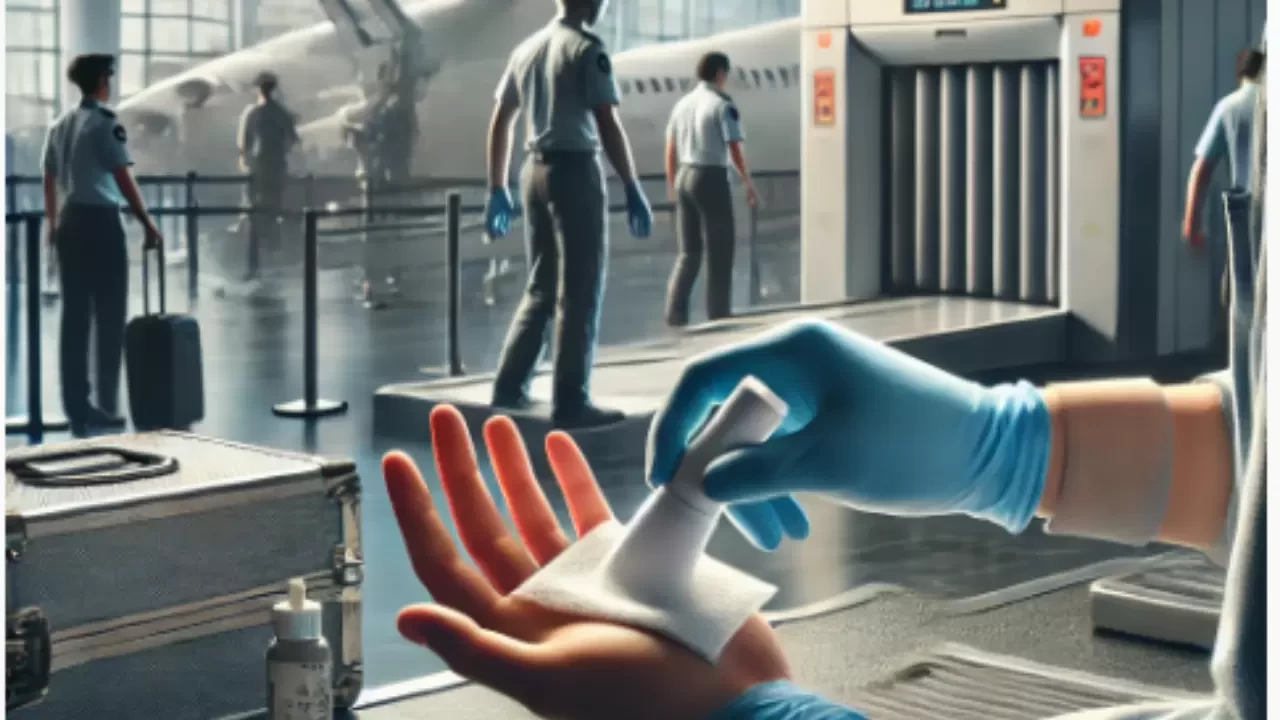 Havalimanlarında güvenlik kontrolü sırasında bazı yolcuların eline veya eşyalarına sürülen özel kağıt, patlayıcı ve tehlikeli maddelerin izlerini tespit etmeye yarayan bir güvenlik ekipmanıdır. Bu kağıt, genellikle beyaz veya açık renkte olur ve yüzeye hafifçe temas ettirilerek kullanılır. Asıl amacı, çıplak gözle görülemeyen kimyasal kalıntıların tespit edilmesini sağlamaktır. Yolcuların elleri, avuç içleri, parmak uçları ya da bazen çanta, kemer ve elektronik eşyalar bu kağıtla kontrol edilir. İşlem son derece kısa sürer ve herhangi bir acı, zarar ya da sağlık riski içermez. Tamamen önleyici güvenlik uygulamaları kapsamında gerçekleştirilir. Günümüzde uluslararası havalimanlarının büyük çoğunluğunda standart bir uygulama hâline gelmiştir.