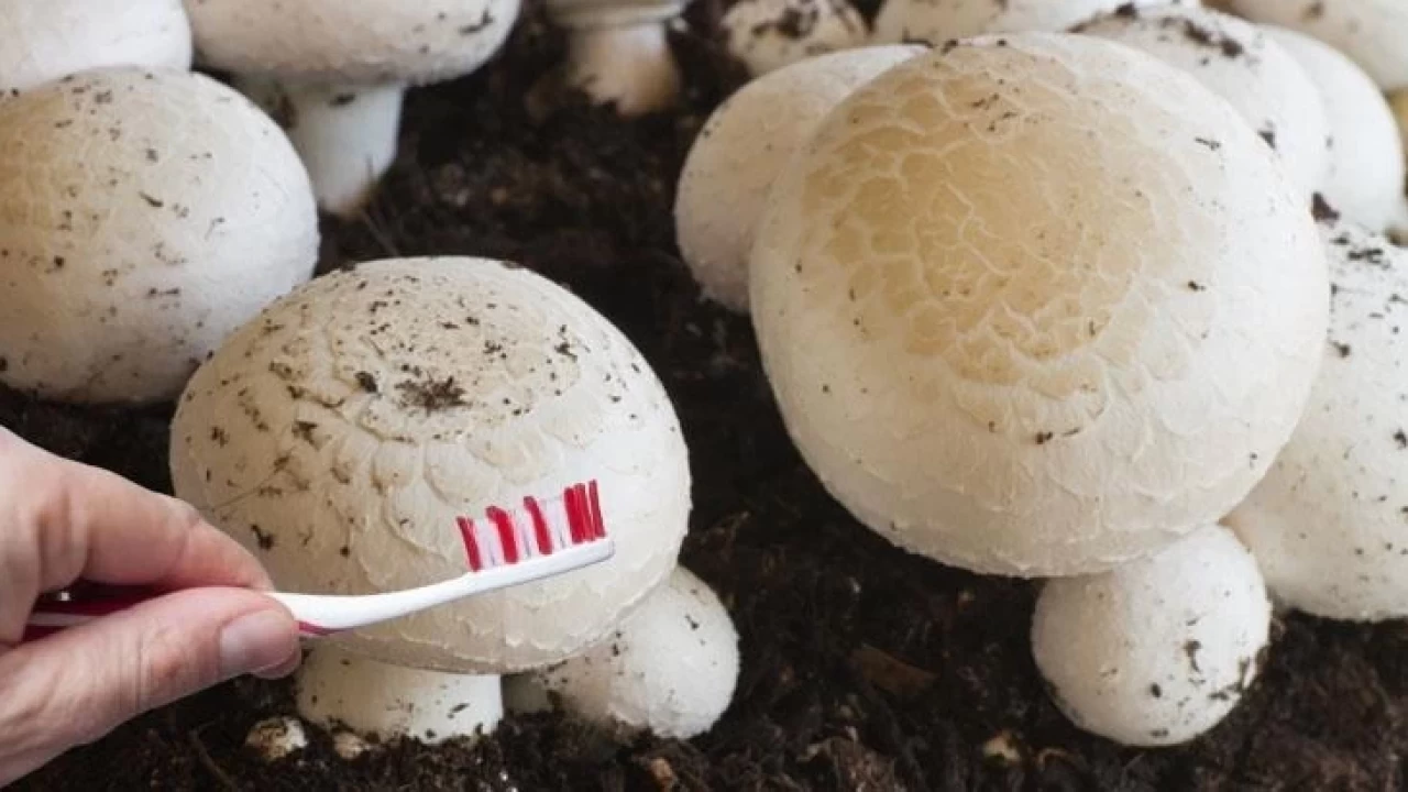 Diş fırçasıyla mantarın baş ve sap kısmını nazikçe fırçalayarak temizleyin. Fırça, mantarın hassas yüzeyine zarar vermeden üzerindeki kirleri ve toprak kalıntılarını alır. Ancak tüm yüzeyini fırçalamayı unutmayın, böylece gözden kaçan kirli alanları geçmemiş olursunuz. Yumuşak kıllı fırçalar, hassas mantar türlerini temizlemek için daha iyidir. Fırçanın kılları çok sert olursa mantarın dokusuna zarar verebilir.
