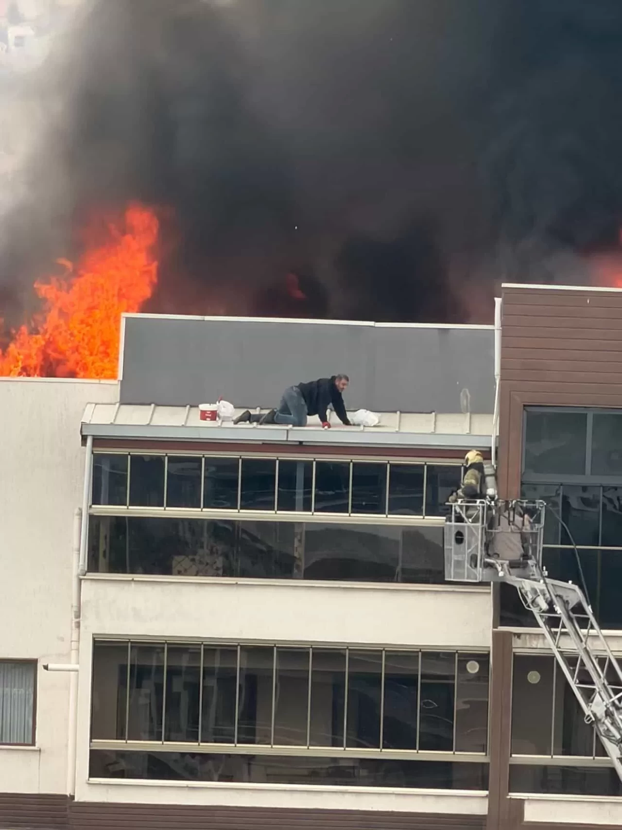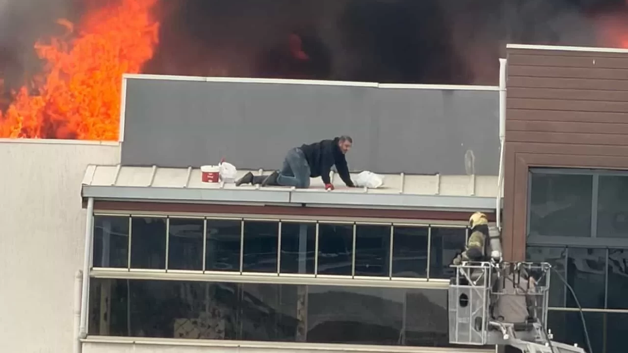 Yangında mahsur kalan bir çatı ustası ile dumandan etkilenen başka bir çalışan için zamanla yarış başladı.