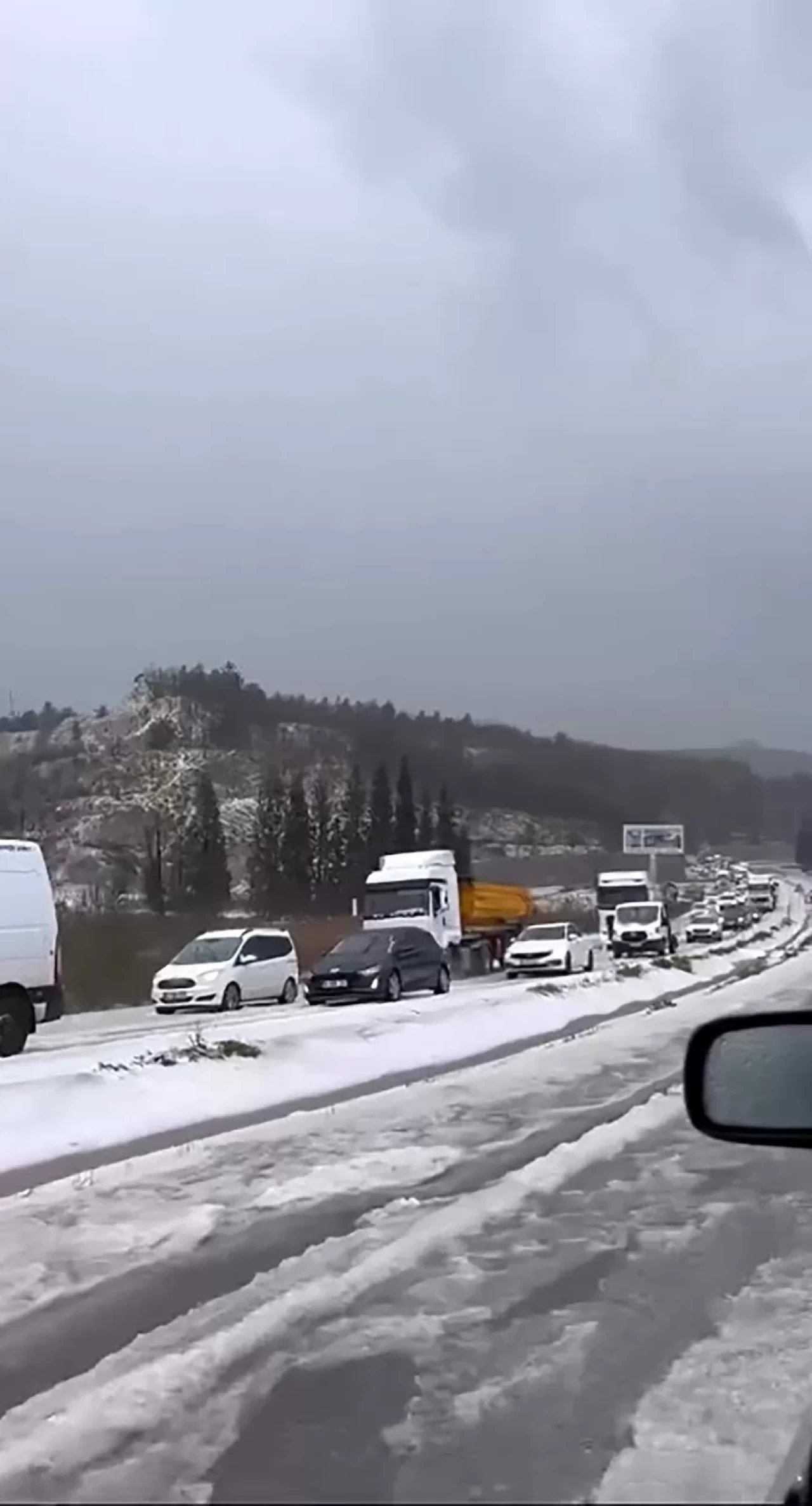 Bazı araçlar güvenlik amacıyla yol kenarına çekilerek yağışın dinmesini bekledi.