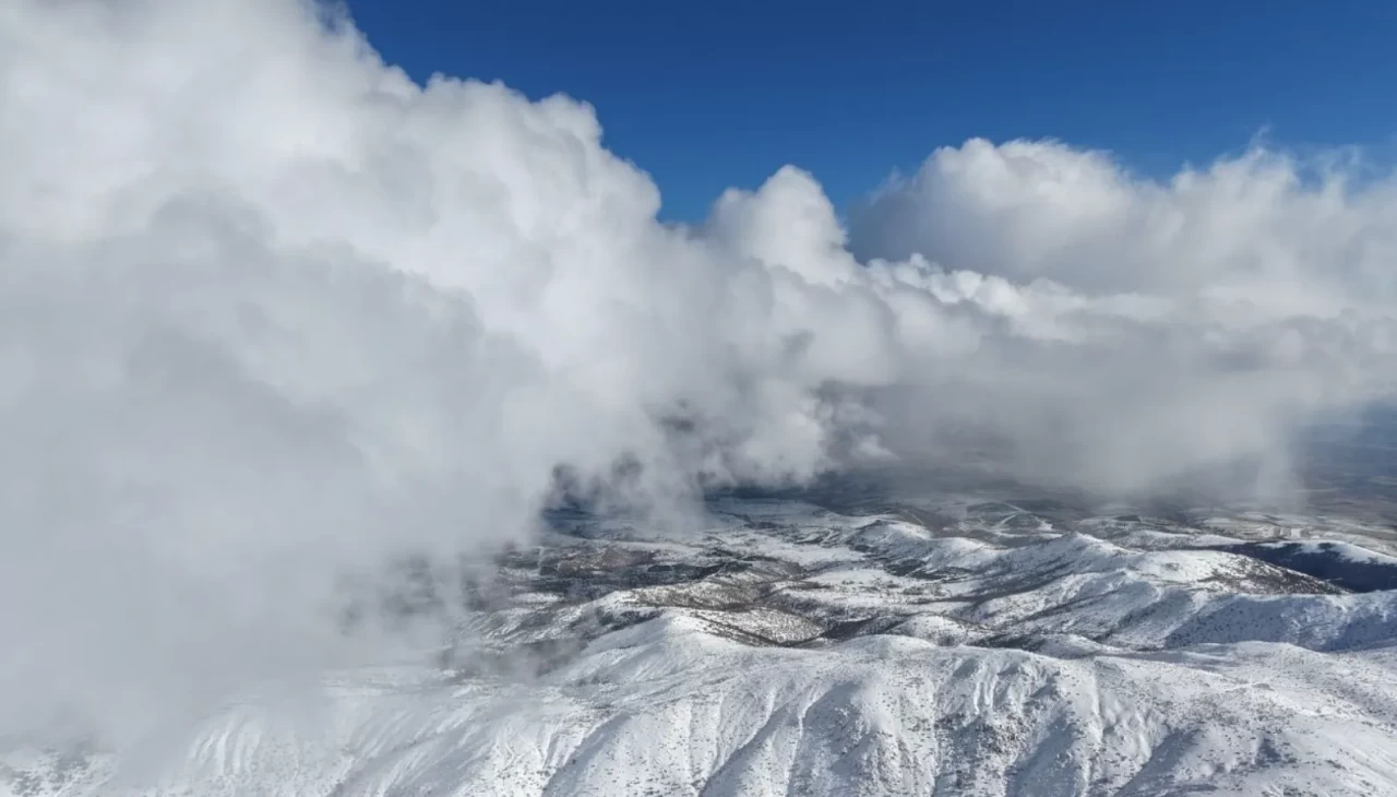 Soğuk havanın etkili olduğu Dinek Dağı’nda karla kaplanan zirve ve yoğun bulutlar havadan görüntülendi. Beyaz örtüyle kaplanan dağ silueti, bulutların arasından yükselen manzarasıyla görsel bir şölen sundu. Yüksek rakımlı bölgede kış mevsiminin tüm güzellikleri havadan çekilen görüntülerle gözler önüne serildi.