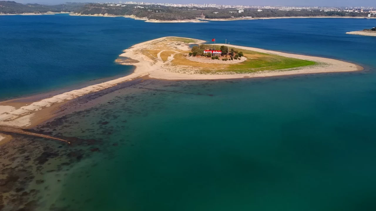 Suların çekilmesiyle birlikte Sevgi Adası'na bağlantı sağlayan yol da ortaya çıktı.
