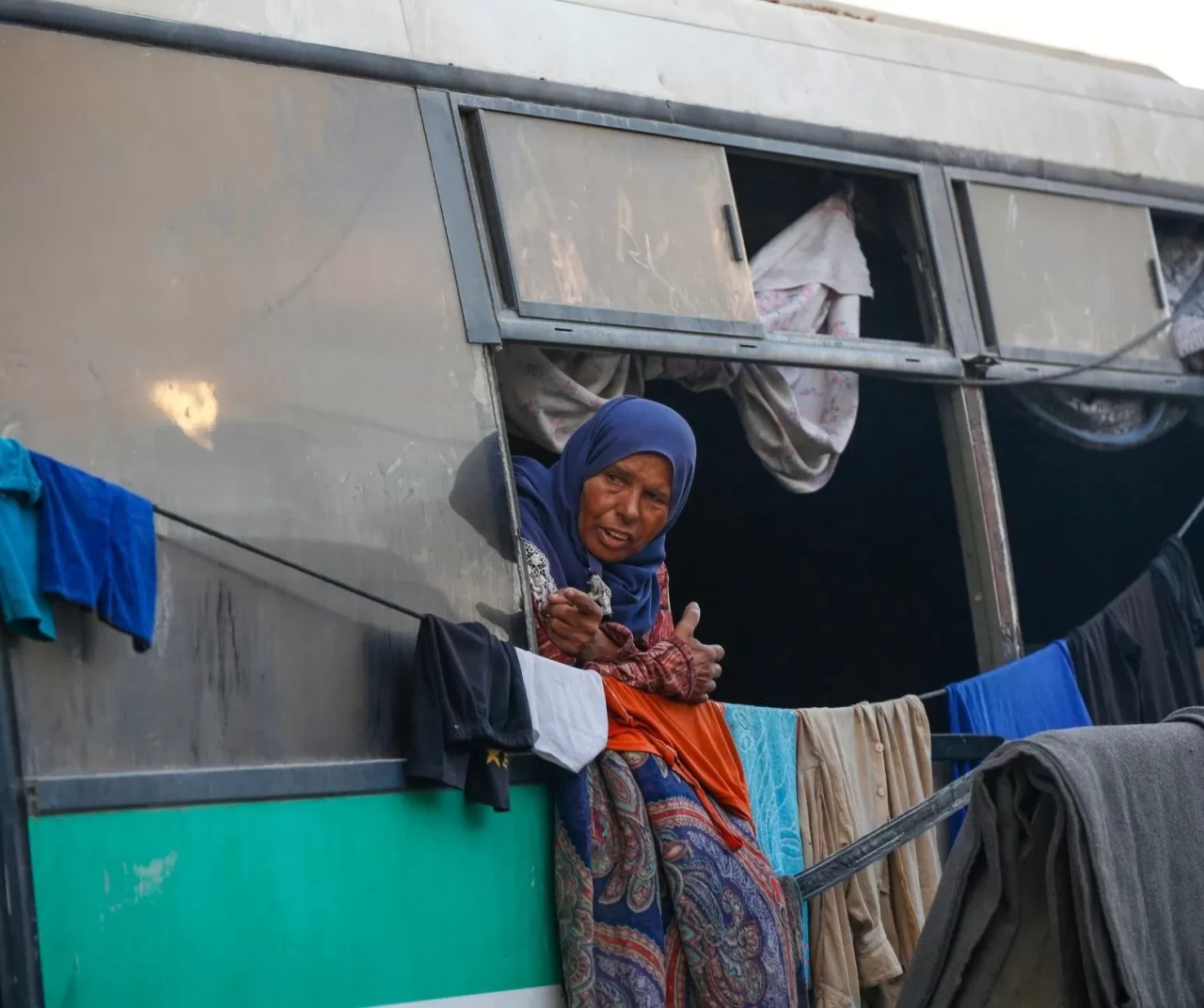 İsrail ordusunun Gazze’nin kuzeyine yönelik başlattığı yoğun kara operasyonu ve zorunlu göç nedeniyle Filistinliler, Gazze Şeridi’nin orta kesimindeki Deyr Belah kentinde nüfus yoğunluğuna yol açtı. Kentte hizmet dışı kalan bir otobüs ve derme çatma çadırlara sığınmak zorunda kalan halk, zor şartlar altında yaşamını sürdürmeye çalışıyor.