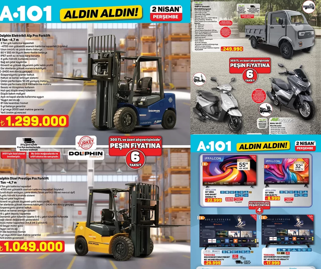 2 Nisan 2026 Perşembe günü A101 aktüel rafları, deyim yerindeyse "yok artık" dedirten bir listeyle doluyor. Özellikle milyonluk forkliftler ve elektrikli kamyonet gibi devasa araçların kataloğa girmesi, bu haftayı A101 tarihinin en ilginç indirim dönemlerinden biri yapıyor.