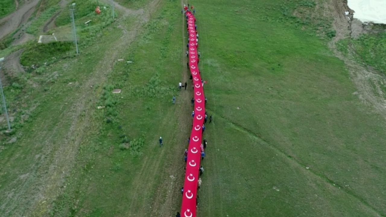 Gençlik ve Spor İl Müdürlüğüne bağlı Gençlik Merkezi gönüllüleri, Palandöken Dağı'nda bir araya gelerek, 150 metrelik Türk bayrağıyla, tekbirler eşliğinde zirveye yürüdü.