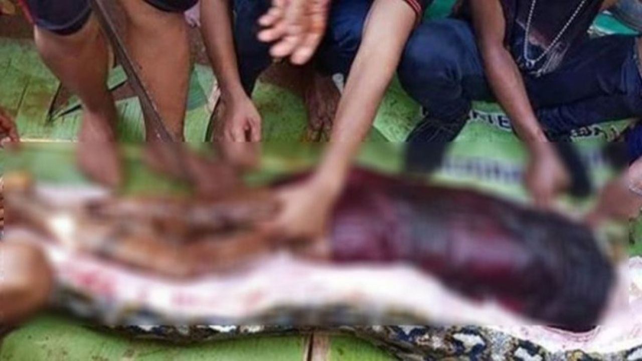 Video, bir gönüllünün pitonun başını bir dalla aşağıda tutarken, diğerlerinin onu şişmiş alana vurmaya başladığını gösteriyor.Videonun rahatsız edici bir kısmı köylülerin pitonun karnını keserken ve yetkililerin kayıp büyükannenin yutulmuş cesedi olduğuna inandıkları şeyi ortaya çıkardığını gösteriyor.ViralPress, yerel Terjun Gajah köyünün başkanı Anto'nun Herkes şaşırdı dedi. Aradığımız kadının yılanın midesinde olduğu ortaya çıktı.Anto, piton Jahra'yı ısırmış ve sonra onu yutmadan önce etrafına sarmış olabilir, dedi. Ayrıca bu olayın yaşanmasının en az iki saat süreceğini tahmin etti.