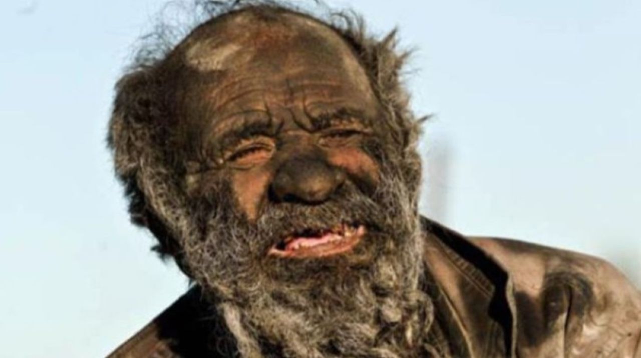 Vücudunu kir tabakası kaplayan adam, 65 yıldır tıraş da olmuyor.