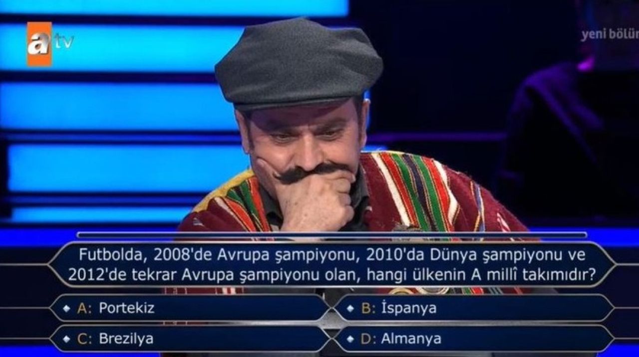 Dertlipolat, kendisine sorulan Futbolda, 2008'de Avrupa şampiyonu, 2010'da dünya şampiyonu ve 2012'de tekrar Avrupa şampiyonu olan, hangi ülkenin A milli takımıdır? sorusuna verdiği cevapla gündem oldu.