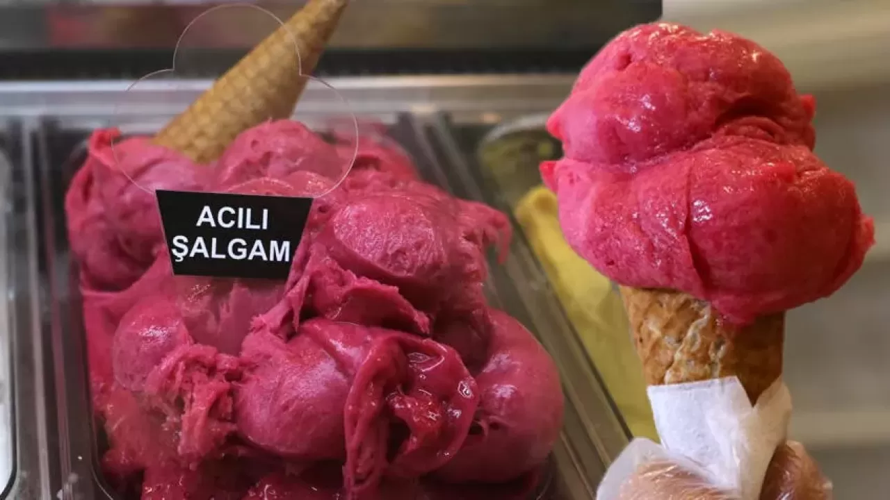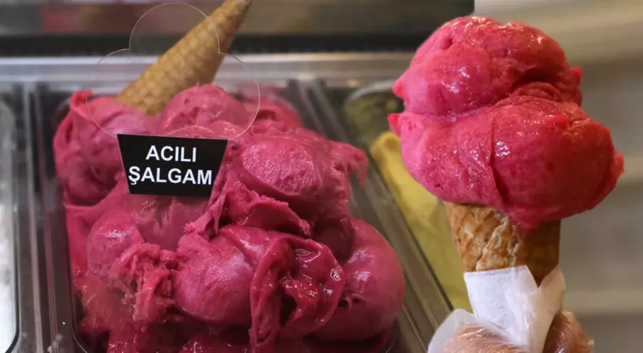 Acılı şalgamlı dondurma, tadı ve görselliğiyle hem gözleri hem damakları şenlendiriyor.
