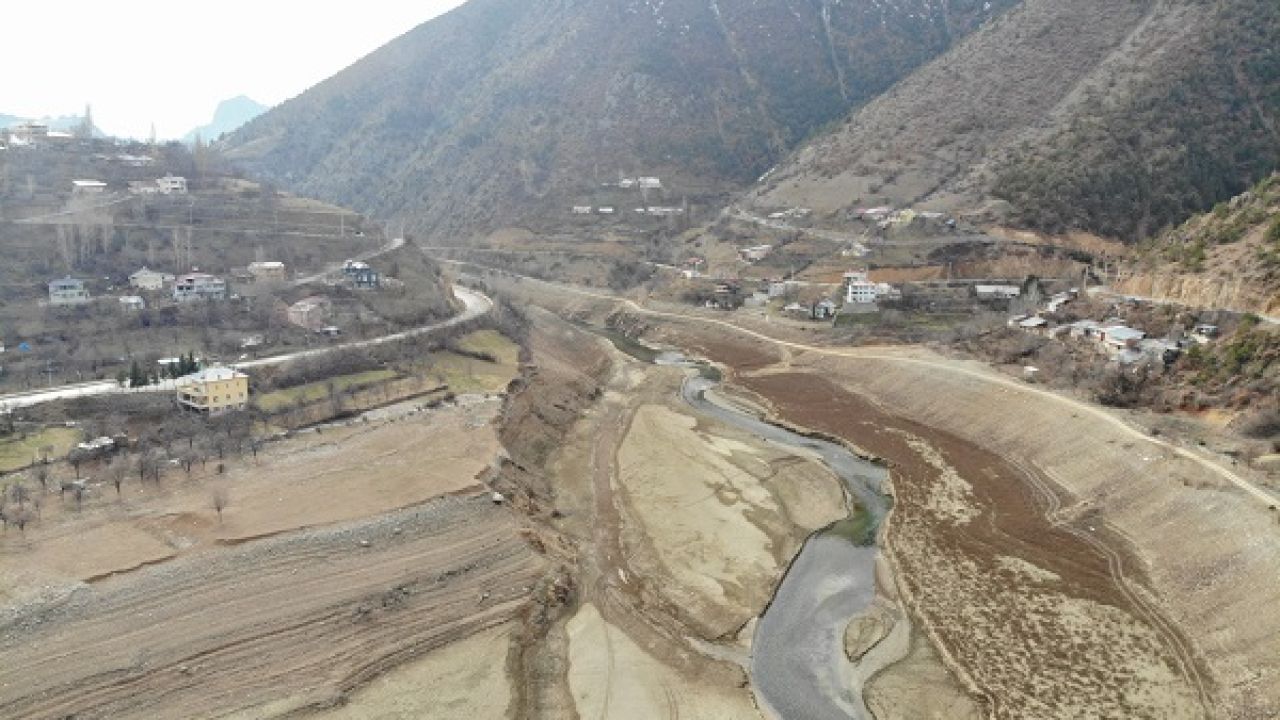 Vauk Dağından doğup Karadeniz'e dökülen ve geçtiği 160 kilometre boyunca derin vadilere hayat veren Harşit çayı üzerinde enerji üretimi için yapılan Torul Barajı ve Hidroelektrik Santrali (HES) gölünün su seviyesi yağışsız geçen sonbahar ve kış mevsimi nedeniyle düştü.