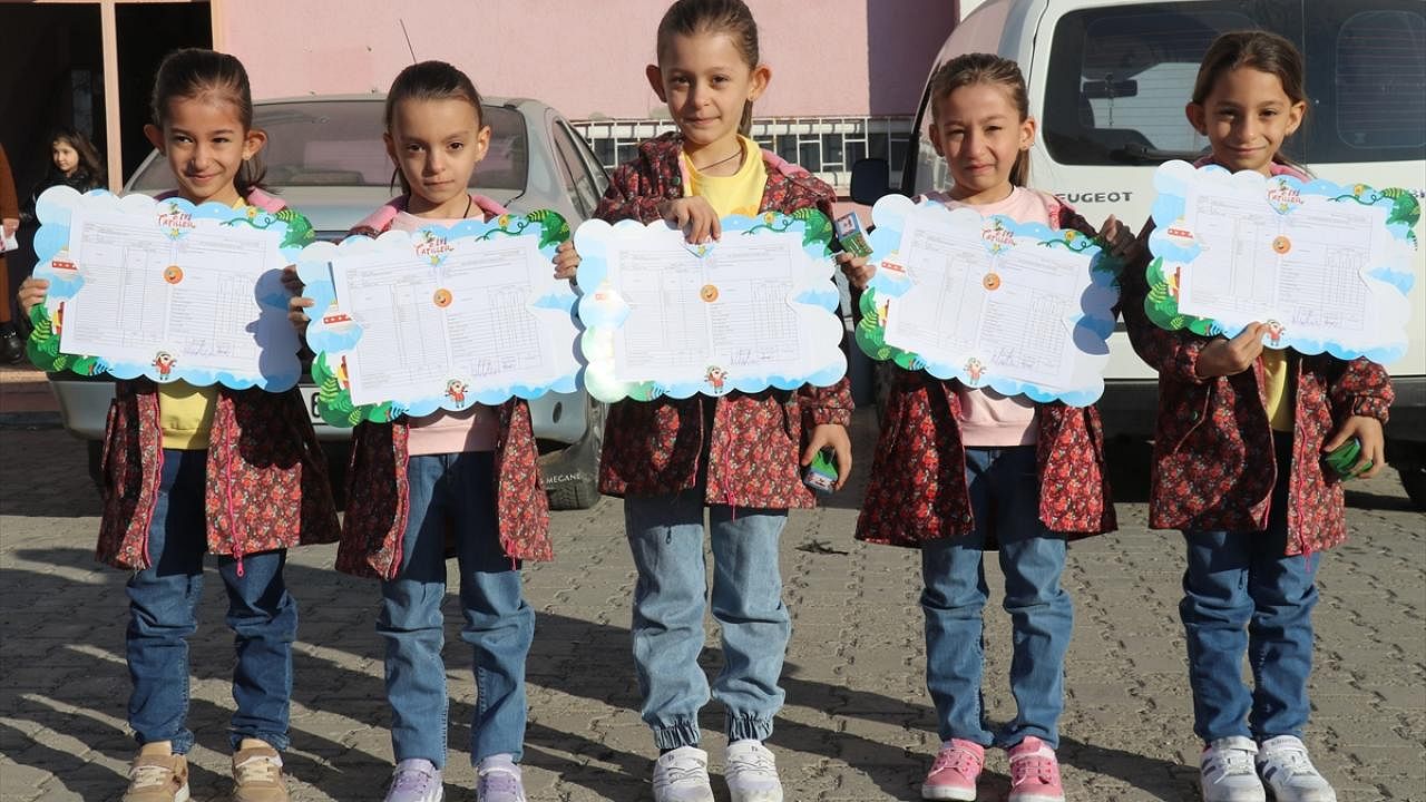 Okumayı öğrendiklerini ve karne aldıkları için çok mutlu olduklarını ifade eden Yılmaz, "İlk karnemizi aldık. Çok ders çalıştık. Çok kitap okuduk ve şimdi de çok mutluyuz. Ara tatilde de ders çalışıp kitap okuyarak ikinci döneme iyi hazırlanacağız. İnşallah ikinci dönem de başarılı oluruz." diye konuştu.