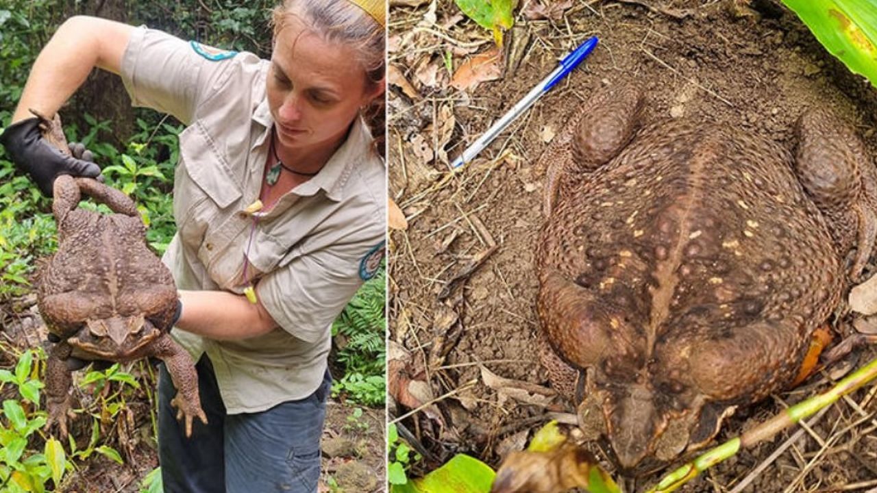 Avustralya'da bulunan kurbağa görenleri hayrete düşürdü. 2.7 kiloluk dev kamış kurbağasının normalin 6 katı büyük olması bilim insanlarını heyecanlandırdı.