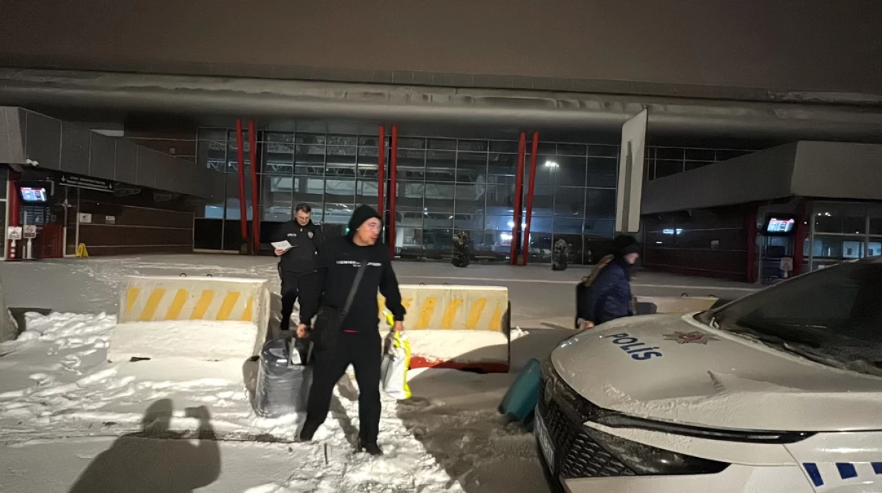 Kavgaya karışan dört yolcu, Erzurum Havalimanı'nda polis ekiplerine teslim edildi.