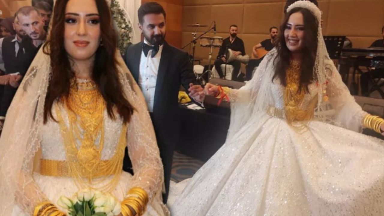 Türkçe ve Kürtçe şarkılar eşliğinde halayların çekildiği düğünde gelin ve damada 2,5 milyon liralık takı ve para takıldı.